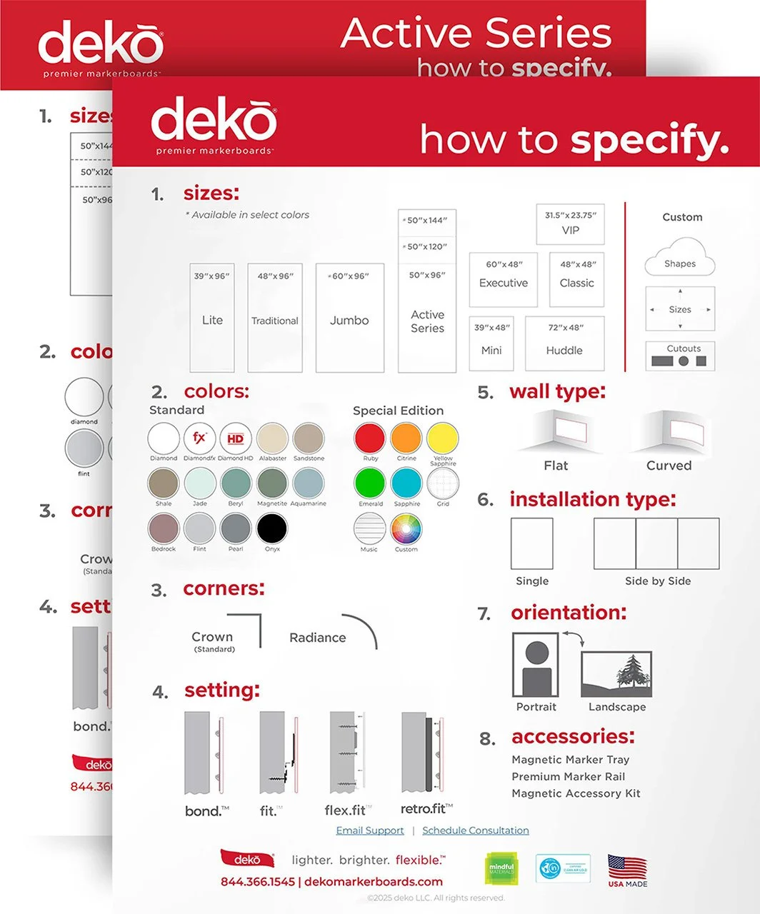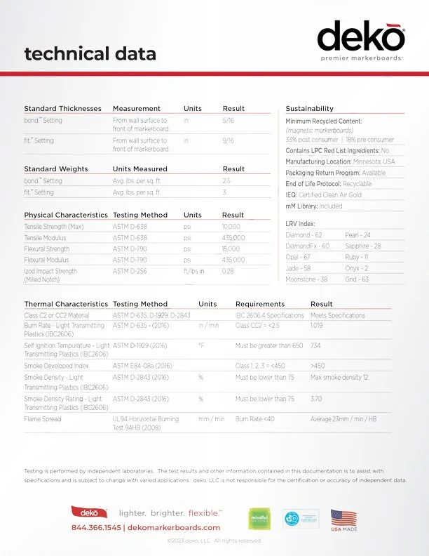 specs & guides. product brochures rovers® transparency doc how to specify premium marker rail magnetic marker tray CSI Specification 10 11 00 technical data install guides caring for your deko shipping & delivery